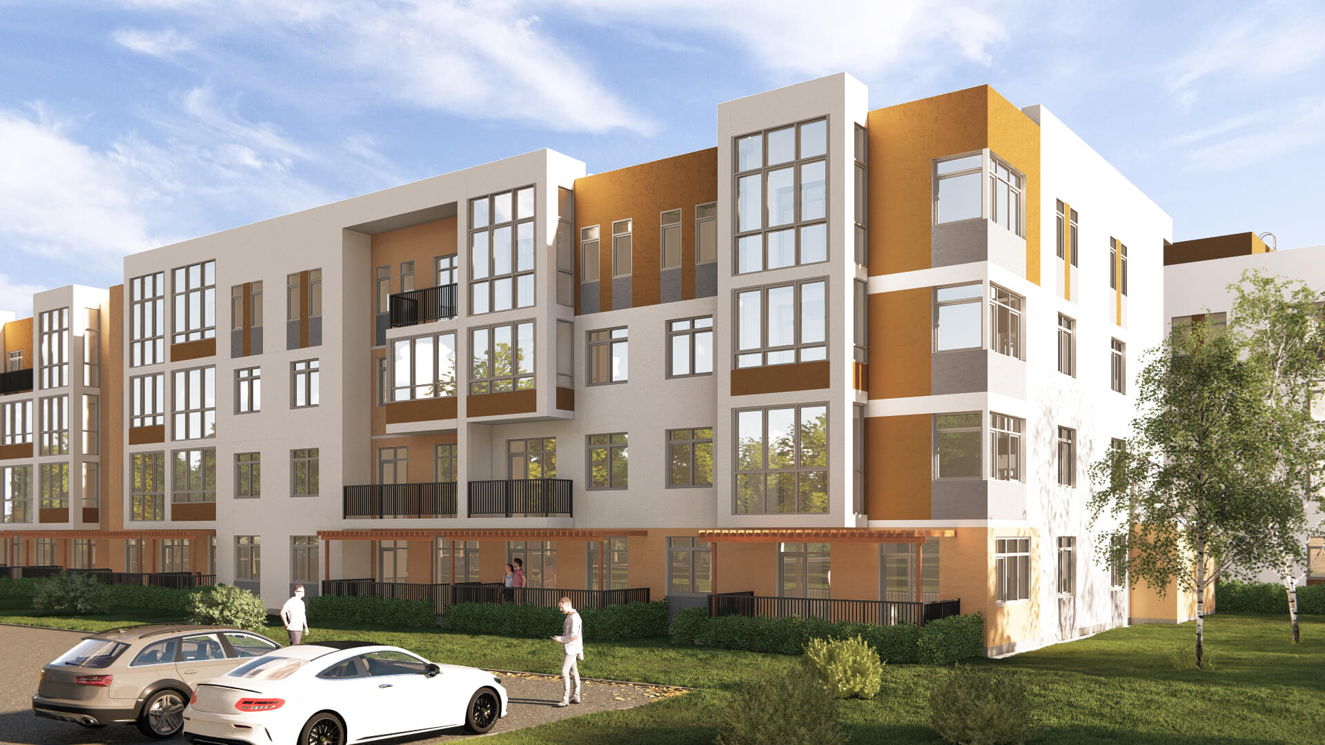 В просторном дворе каждый найдет занятие по душе – одинаково комфортным будет как чтение книги на скамейке, так и занятие воркаутом. Шум активных игр и спортивных состязаний не будет мешать дневному сну малышей в колясках и тихим разговорам их родителей. Базовые ценности проекта – комфорт для каждого и эстетика, и воплощению этих ценностей подчинены зонирование территории, озеленение и ландшафт комплекса.