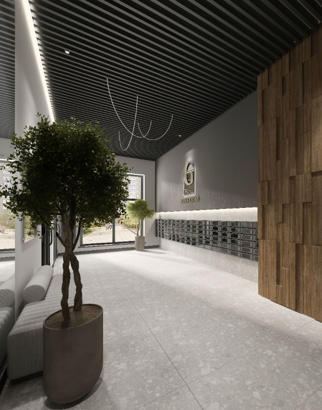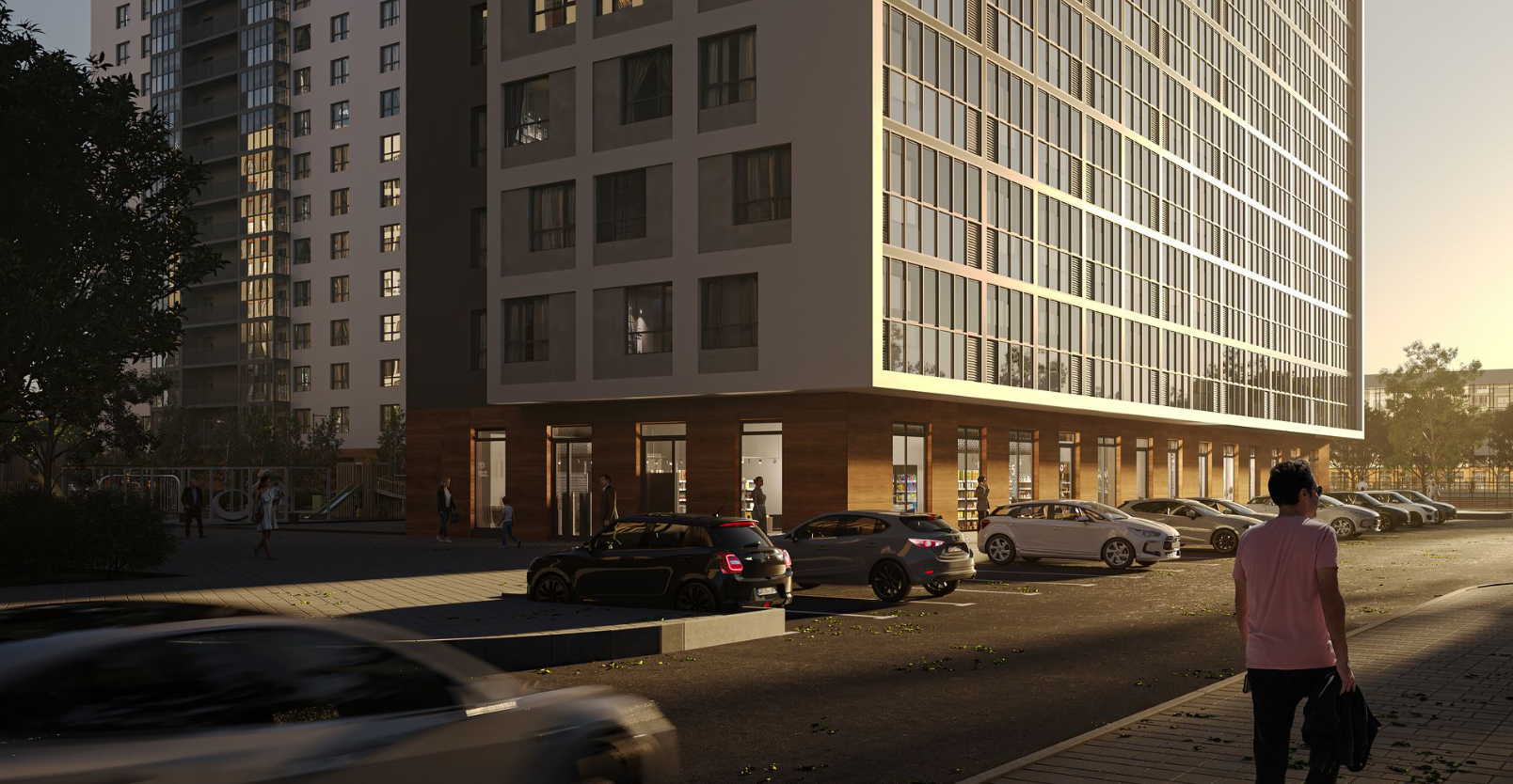 Коммерческие помещения, в большом разнообразии запланированные на первых этажах, будут отделены от жилой части комплекса, безопасно разводя потоки жильцов и посетителей.
