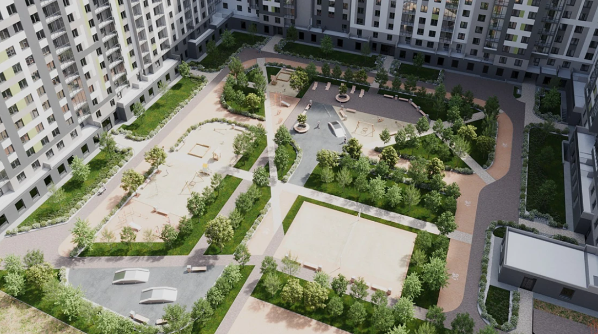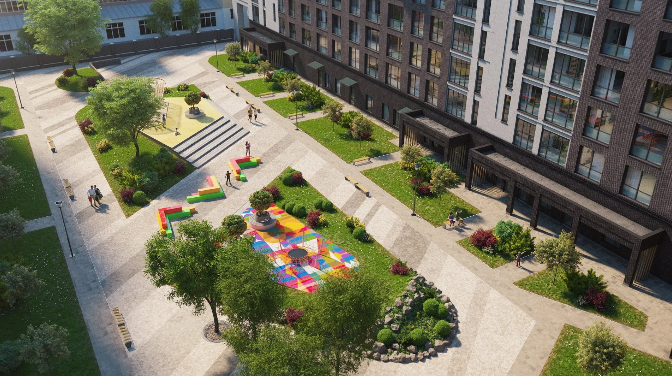 Уникальное сообщество. Наши спортивные площадки и дорожки предназначены для прогулок и бега, у нас есть столы для тенниса, собственный скейт-парк, уличные тренажеры, площадки для волейбола и футбола, а также батуты и игровые комплексы.