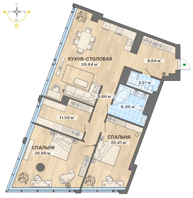 На выбор покупателей — апартаменты площадью от 48,5 до 131 м², в том числе свободной планировки. Из окон открываются панорамные виды на Екатеринбург-Сити и набережную Городского пруда.